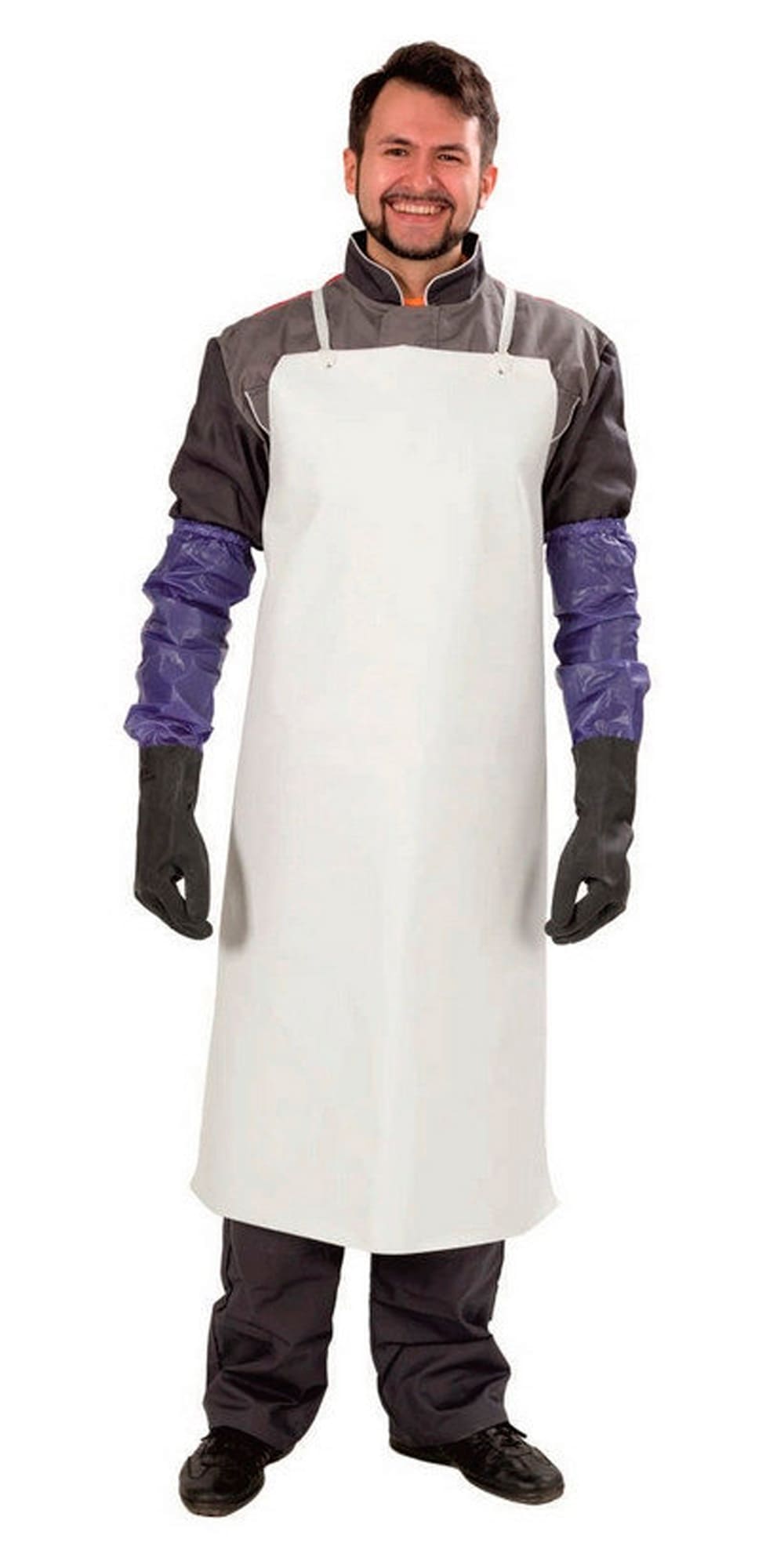 Фартук ПВХ для пищевой промышленности ПВХ К60Щ40 Тип Б. Изготовлен из двухсторонней безосновной ткани ПВХ с добавлением полиуретана , что позволяет не впитывать запахи, кровь, жиры, масла и другие загрязняющие продукты, плотностью 500 гр. К60 Щ40. Морозостойкий, долговечный, износостойкий для любого пищевого производства. Размеры 120*100 см. С люверсами, в которые продеты и приварены завязки из основной ткани.