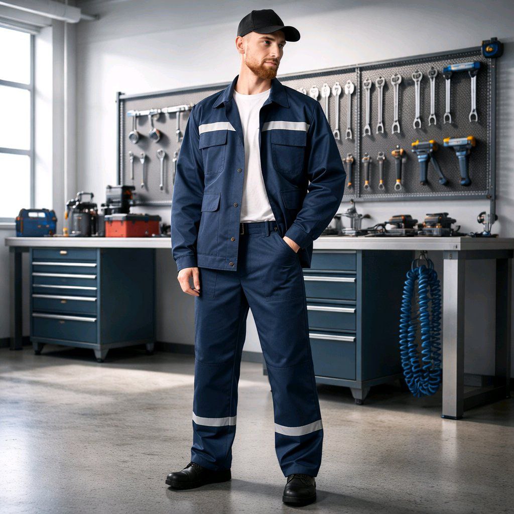 Рабочий костюм состоит из куртки и брюк.