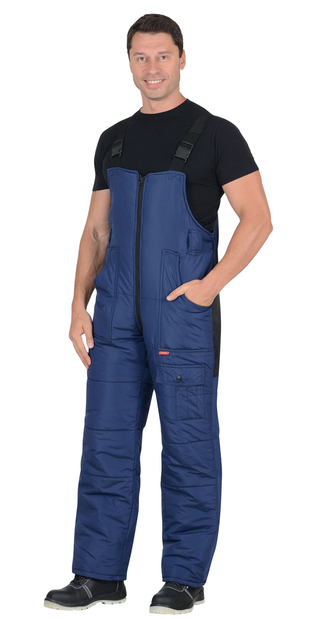 Полукомбинезон утепленный, с бретелями, с центральной застежкой на молнию и внутренней ветрозащитной планкой, с боковыми карманами, с резинкой по линии талии спинки для лучшего прилегания.