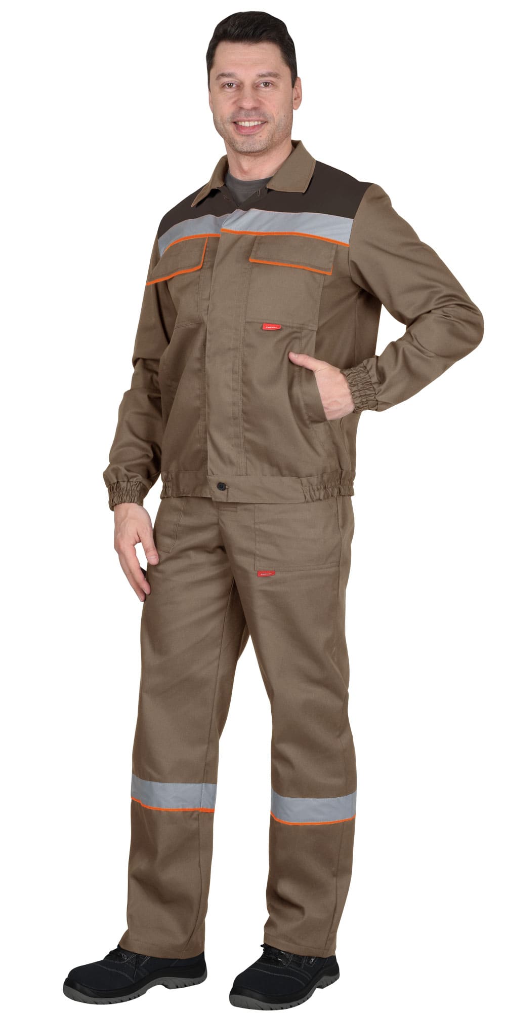 Костюм рабочий летний состоит из куртки и полукомбинезона. В костюме предусмотрена лента светоотражающая ш.50 мм, что обеспечивает видимость рабочего при любом освещении.