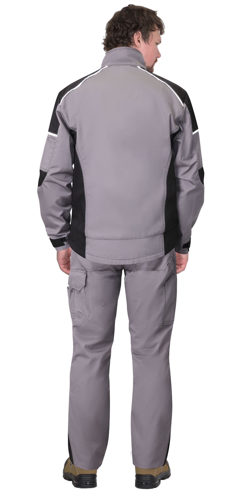Куртка двухцветная, прямого силуэта, укороченная, с воротником стойка, с центральной застёжкой на молнию от края воротника до низа, накрытую ветрозащитной планкой и внутренней короткой планкой по правому борту, с нагрудными карманами с молнией, с нижними карманами в шве. Рукава втачные, объём по низу рукава регулируется хлястиком с текстильной застёжкой «липучка». В куртке предусмотрен СВ кант.